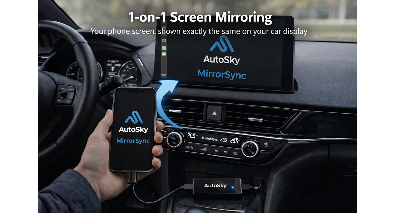 AutoSky AMS-1 draadloze smartphone mirroring adapter - Aktie!