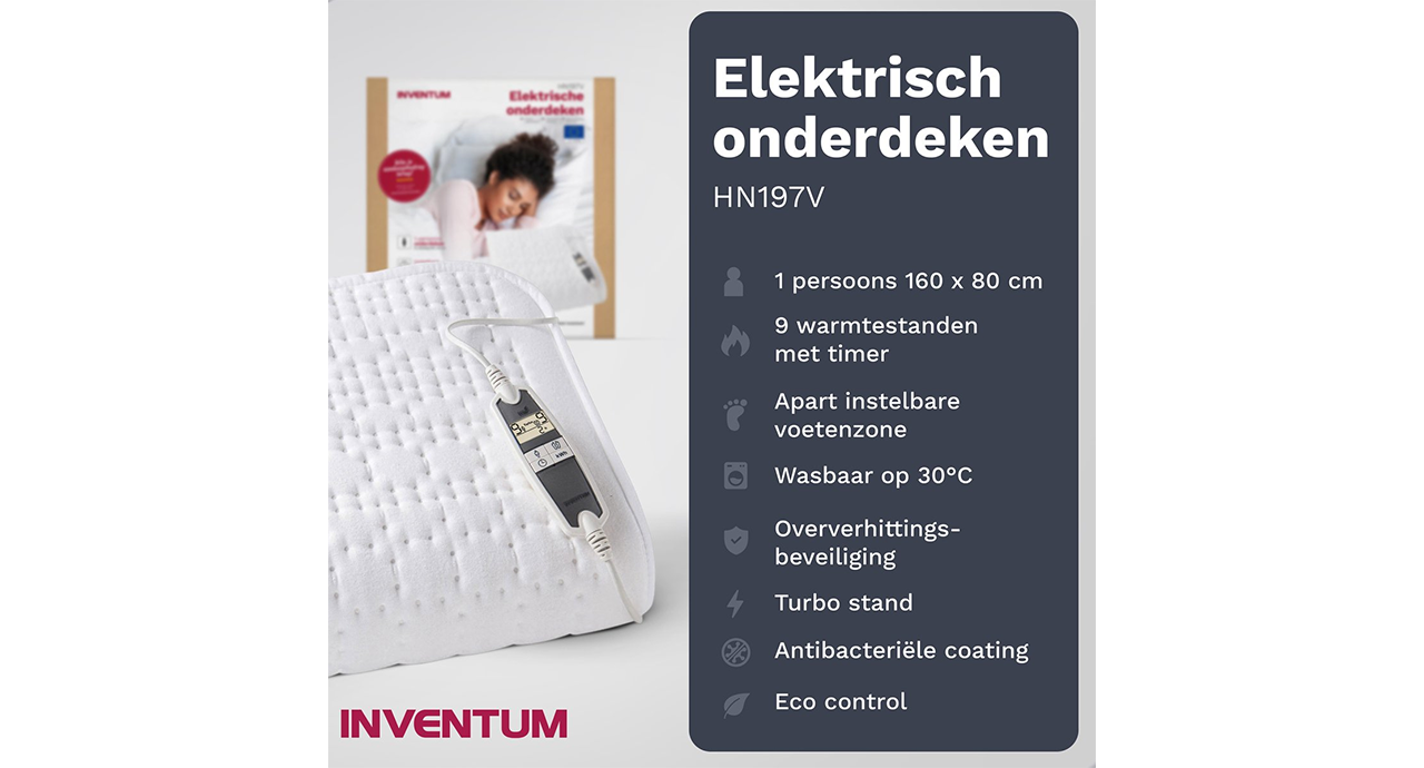 Inventum HN197V elektrische onderdeken 160x80 cm - Eenpersoons - 9 warmtestanden